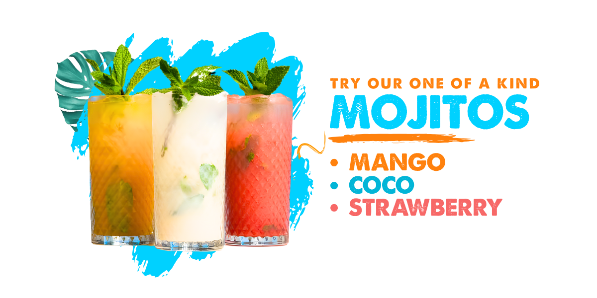 Try our classic Mojito and opt for a fruity twist of coconut, mango, strawberry, pineapple or passion fruit.